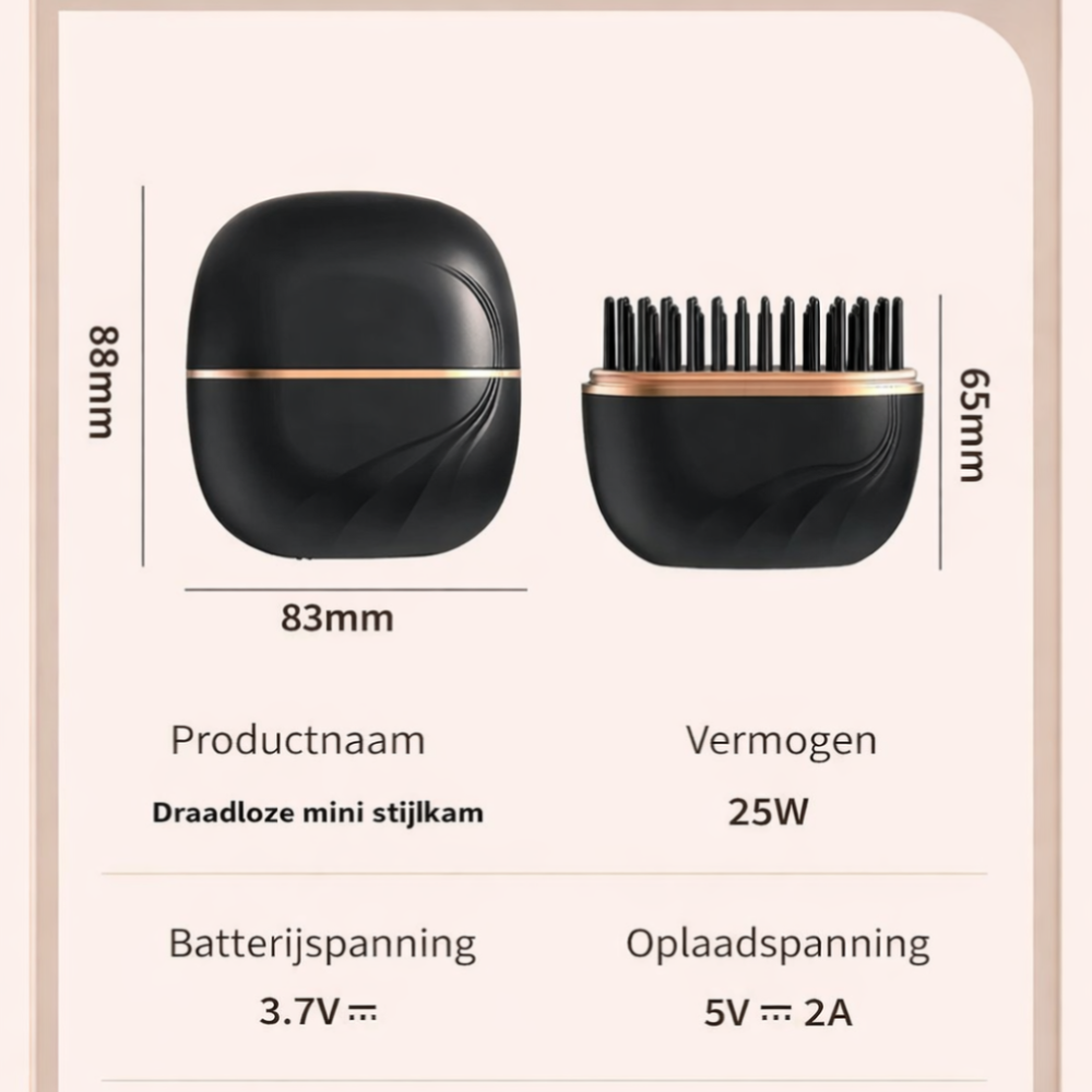 “Deze stijlkam is super handig in gebruik. Warmt snel op en maakt mijn haar glad en pluisvrij. Ideaal voor onderweg.”